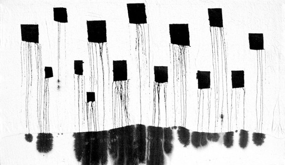 Instant Gesture Machine | 48″ x 48″ Ink and String on Canvas
