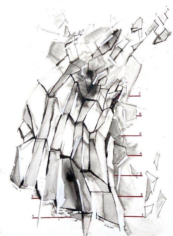 Measuring Rock Face | 18″ x 24″ Ink on Paper (Sold)