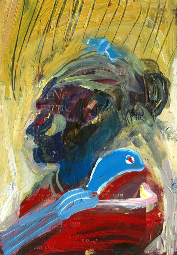 Figure Painted in London 03 | 6″ x 8″ Acrylic on Postcard