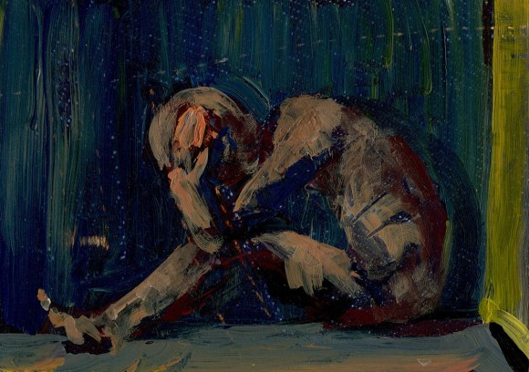 Working Alone | 6″ x 8″ Acrylic on Postcard