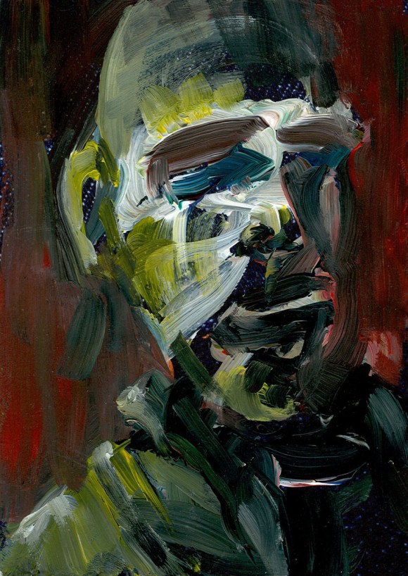 Face 09 | 4″ x 6″ Acrylic on Postcard