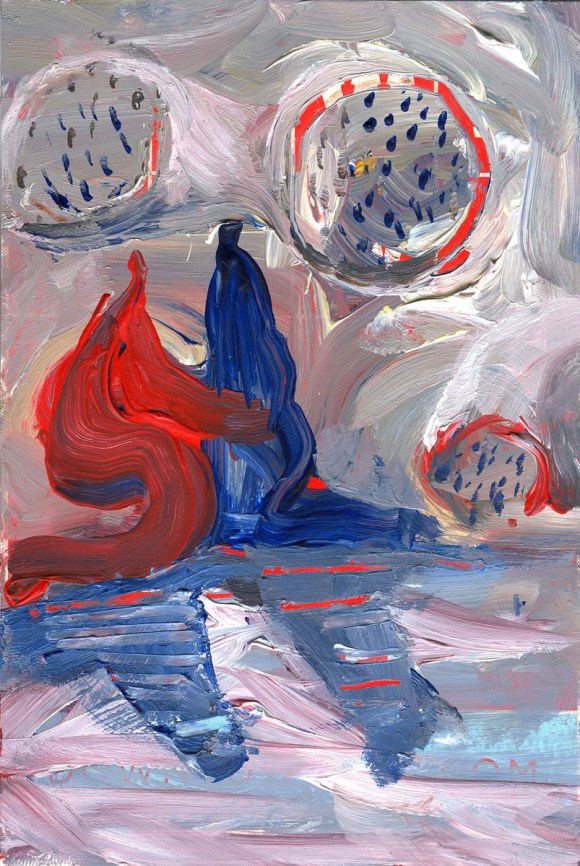 Blue Gathering | 4″ x 6″ Acrylic on Postcard (Sold)