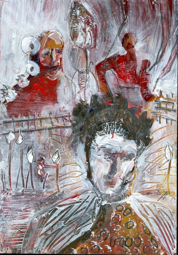 Power Figure | 6″ x 8″ Acrylic on Postcard (Sold)