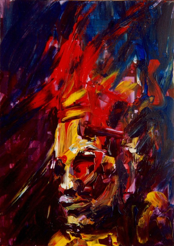 Face 01 | 4″ x 6″ Acrylic on Postcard