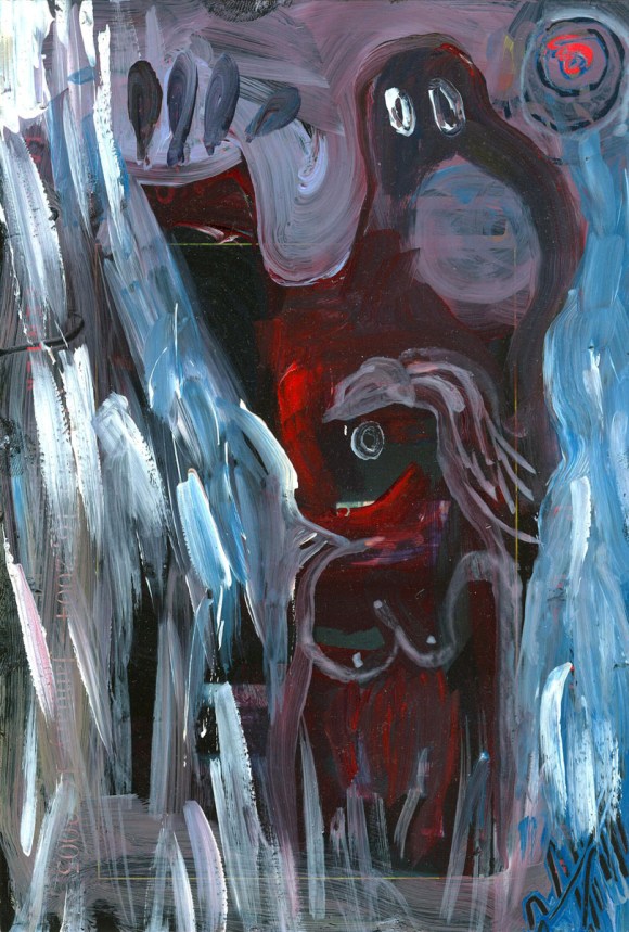 Overwhelming Transmission | 4″ x 6″ Acrylic on Postcard