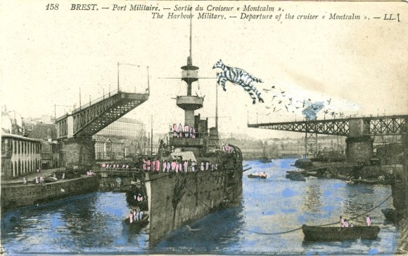 Departure of the Cruiser | 3″ x 5″ Acrylic on Postcard