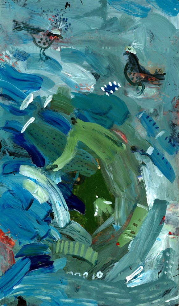 Bird Conversation | 5″ x 7″ Acrylic on Postcard