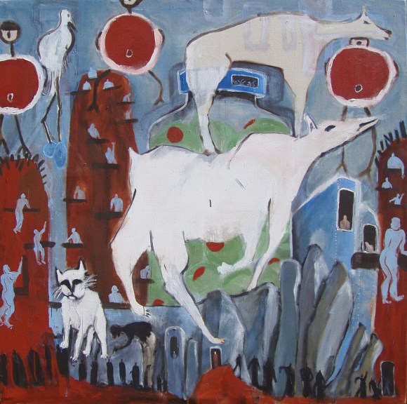 Deer Feed | 48″ x 48″ Ink and Acrylic on Canvas (Sold)