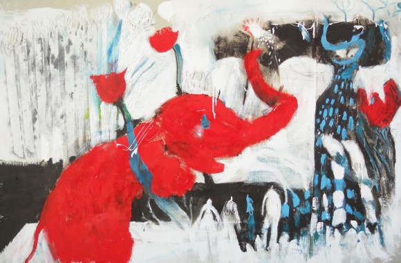 Elephant Bathing | 96″ x 50″ Acrylic on Canvas