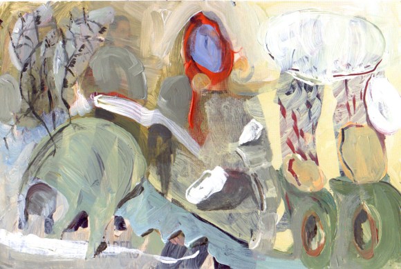 Seven Conversations | 6″ x 8″ Acrylic on Postcard