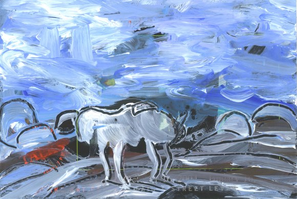 Wandering Goat 1 | 6″ x 8″ Acrylic on Postcard (Sold)