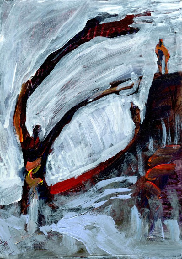 Swimming Falls | 6″ x 8″ Acrylic on Postcard